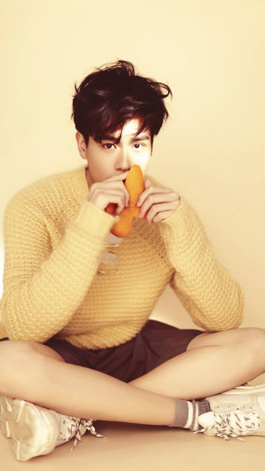 图集介绍:胡一天文艺暖男帅气写真壁纸,图片中的胡一天身穿黄色圆领毛衣,带着眼镜,文艺范十足。