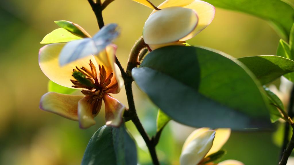 图集介绍:令人如痴如醉的含笑花图片,看着那弥漫着幽香的含笑花,那花苞被翡翠般嫩绿的萼片包着,犹如母亲保护孩子一般,萼片保护着花苞,一直保护到呈米白色的花瓣尖露出来。它那时时送来的酒香,令人如痴如醉,久久难忘。