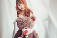 图集介绍:每个女孩都需要个泰迪熊,家中仅穿着内衣,怀中抱着一个大大的泰迪熊玩偶。