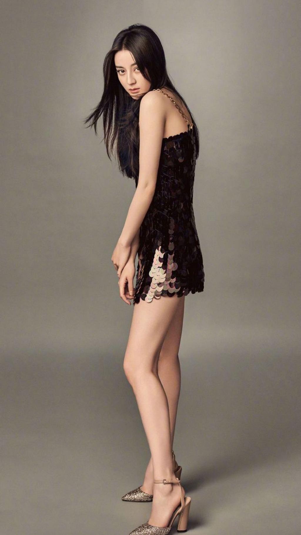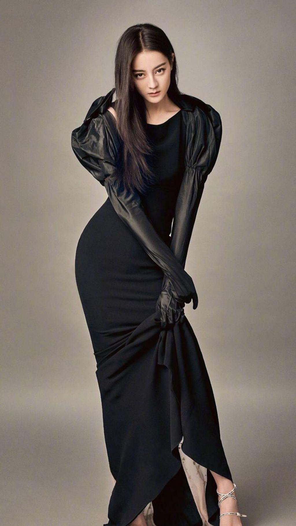 迪丽热巴黑色流苏斜角裙优雅迷人写真