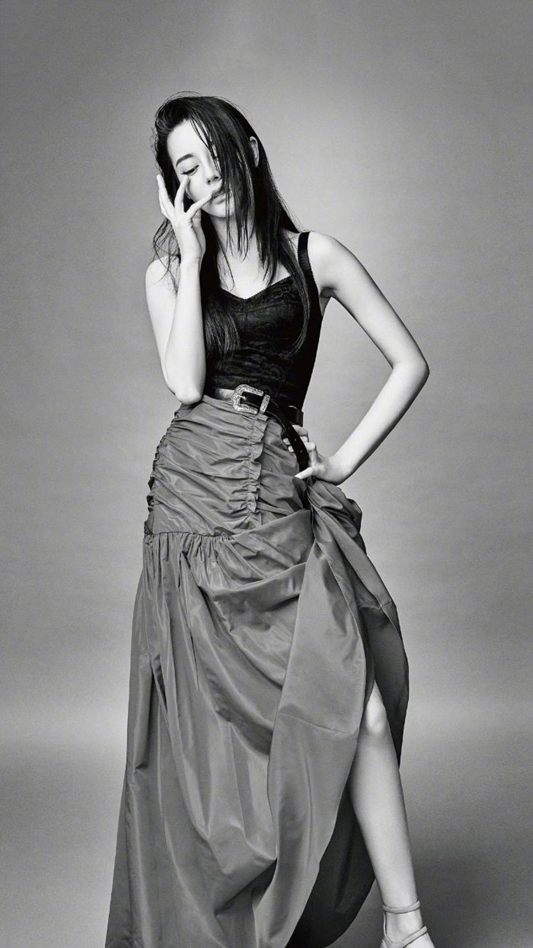 迪丽热巴斜肩高叉裙写真