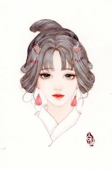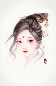 手绘古风美女唯美插画