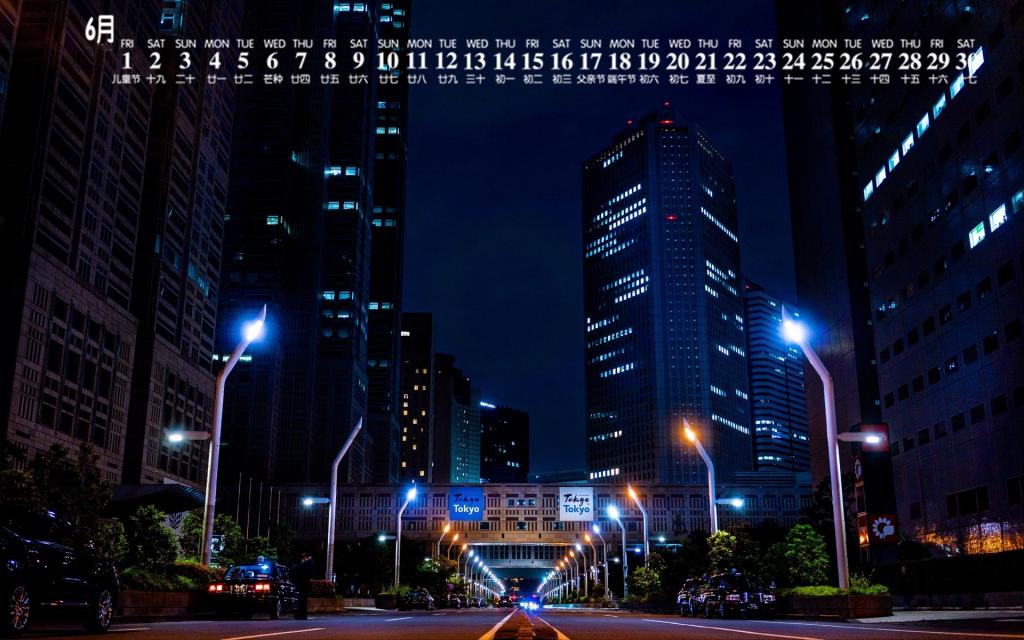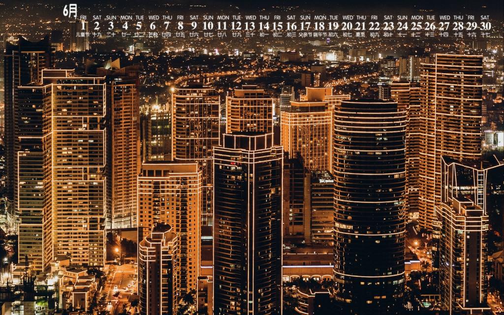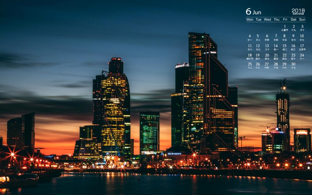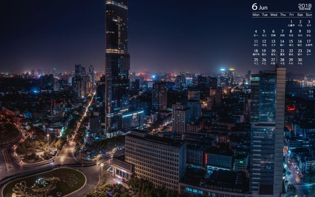 2018年6月城市建筑夜景图片日历
