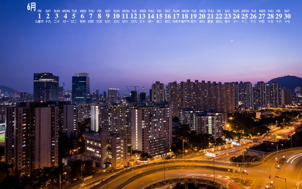 图集介绍:2018年6月城市建筑夜景图片日历壁纸,夜幕无声地降临,楼下一排排低低的树渐渐模糊起来,像是裹了一层纱,浪潮一般的车声,依旧在整个天地间弥漫。