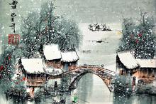 冬赏江南水乡水彩画