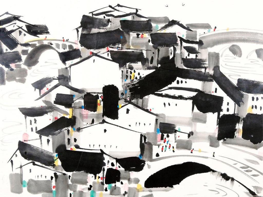水乡古镇水墨画