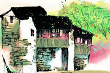 水彩江南古镇之夏