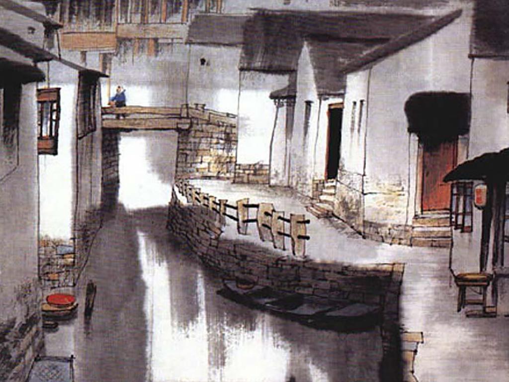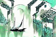 水乡古镇水墨画
