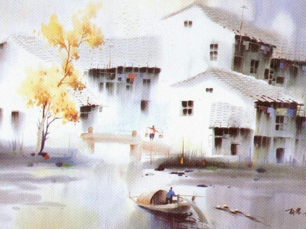 彩画秋之韵江南水乡