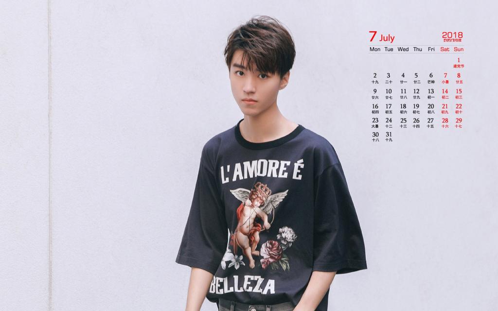2018年7月王俊凯帅气图片日历