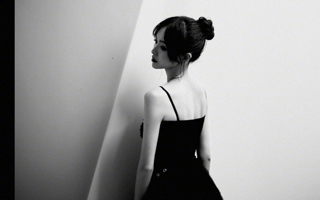 性感美女唐嫣黑色吊带裙诱人写真