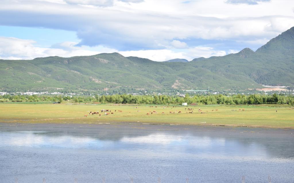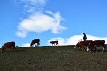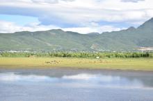 图集介绍:骑行在路上壁纸,一望无际的海,牛羊成群,在大自然的田间游荡。