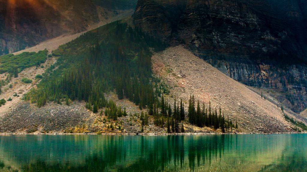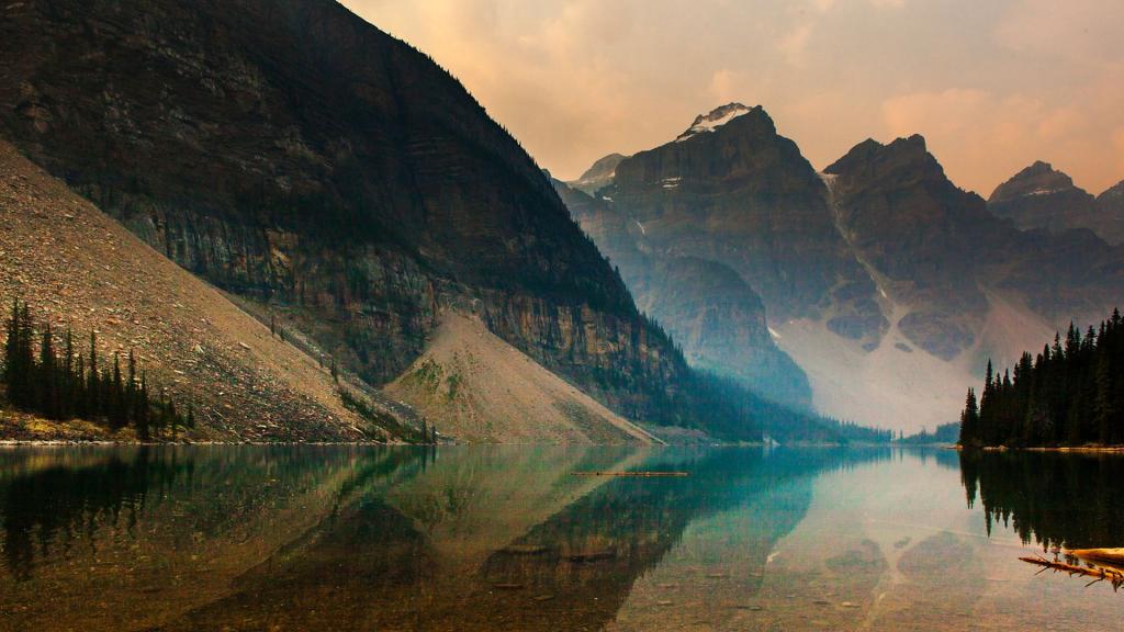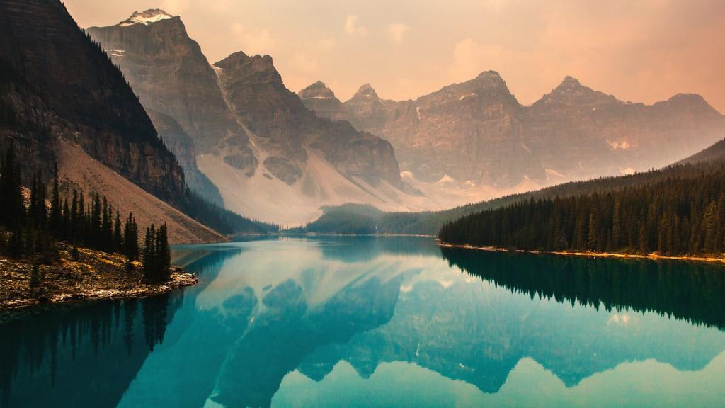 图集介绍:加拿大梦莲湖自然风光壁纸,梦莲湖是加拿大班夫国家公园的一个冰川湖,距路易斯湖14公里。由于梦莲湖是一个冰川湖,因此只有到每年六月底,湖水才到达最高线,折射沉积的岩粉,呈现出美丽的蓝绿色。梦莲湖被世界公认为是最有拍照身价的湖泊。湖面呈宝石蓝色,晶莹剔透,在锯齿状的山谷的拥环下,就像一块宝玉。这块“国宝”被印在加拿大20元的纸币上。