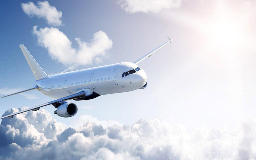 蓝天上滑翔的飞机