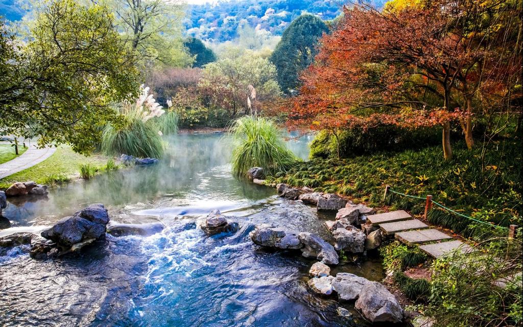 图集介绍:九溪十八涧是一个景点,位于浙江省杭州市的著名景点西湖之西的群山中,上自龙井起蜿蜒曲折7公里入钱塘江,该景点旅游时间春秋最佳。九溪在烟下岭的西面,在龙井山的南面,九溪水曲折回旋,它曲曲折折了九回才流出,所以称它为九溪。它的路径崎岖,草木茂盛,人迹罕至,幽美寂静,别有一番天地,并不像人间那么喧闹。