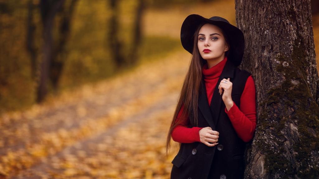美人枫叶林中漫步