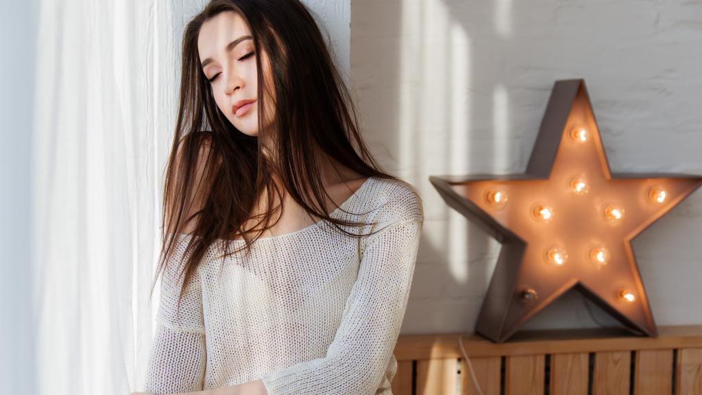 优雅迷人美女蕾丝连衣裙甜美气质迷人居家写真