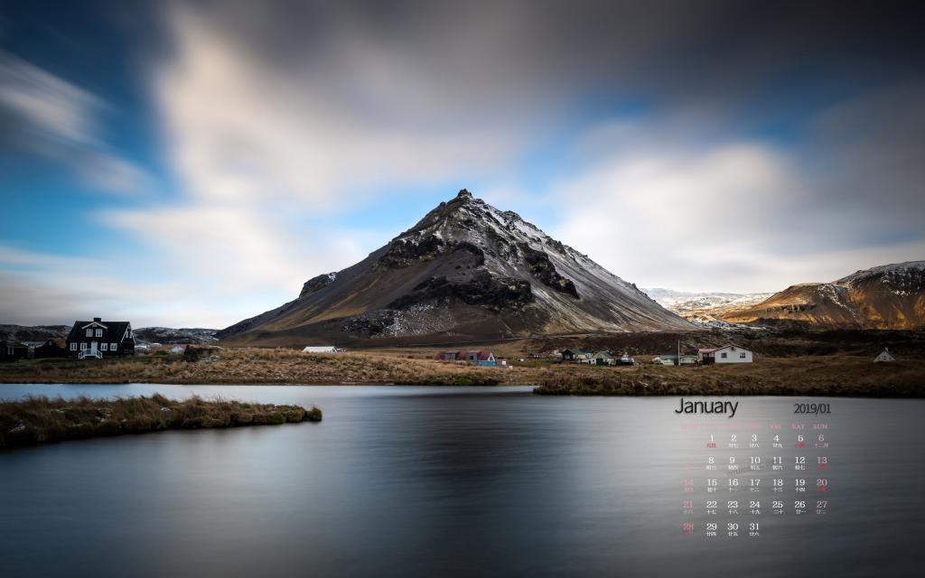 图集介绍:2019年1月冰岛唯美风光日历壁纸,冰岛大自然神奇的色彩从出门那一刻就可以惊叹,黄色,红色,绿色,黑色,蓝色……全部自然的颜色组合在一起,成了一幅画。