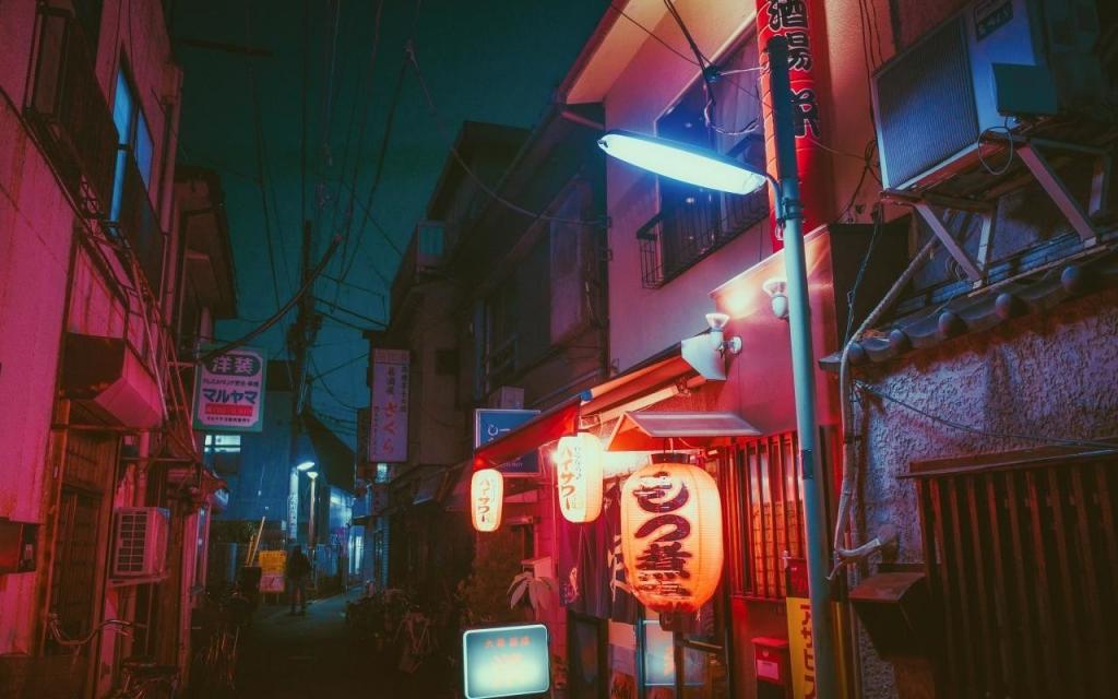 日本昭和风唯美城市夜景