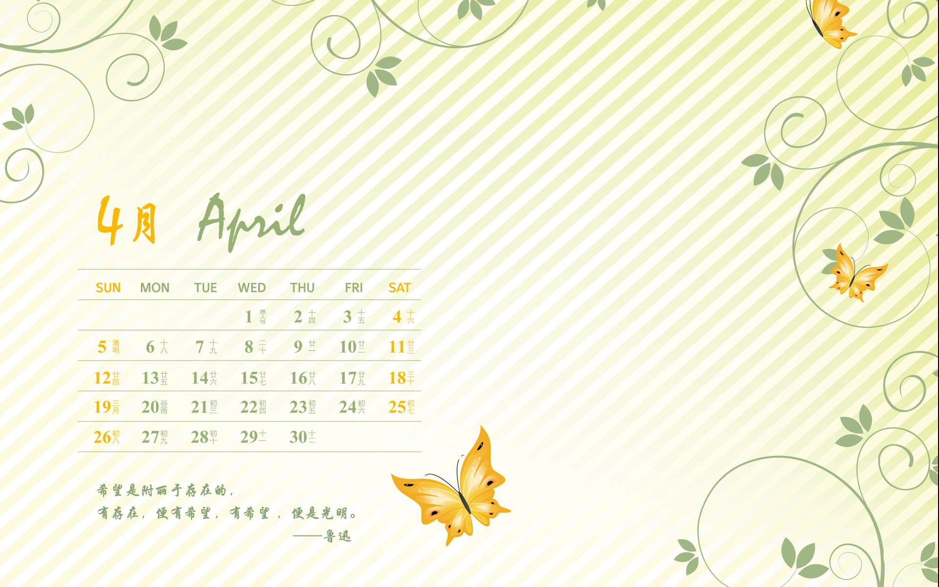 图集介绍:2015年简约小清新4月日历壁纸。为你的桌面换上一张干净清新简约的壁纸吧!2015年简约小清新4月日历桌面壁纸让亲们能够愉快的迎接4月份的到来。独一无二的小清新风格,日历壁纸能够让我们每天精确的知道阳历,日历,以及节日,也能让桌面看着非常的美观,这样的纯手工壁纸千万不要错过哟~~