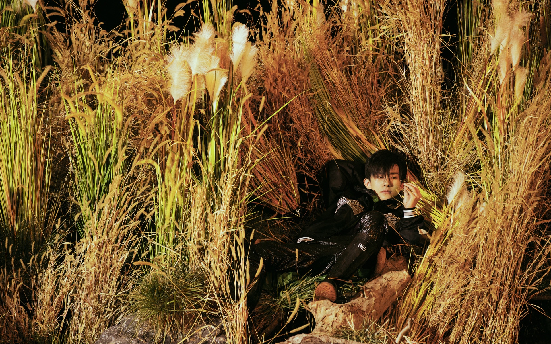 少年TFBOYS易烊千玺夜间湖边高冷帅气写真