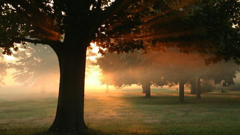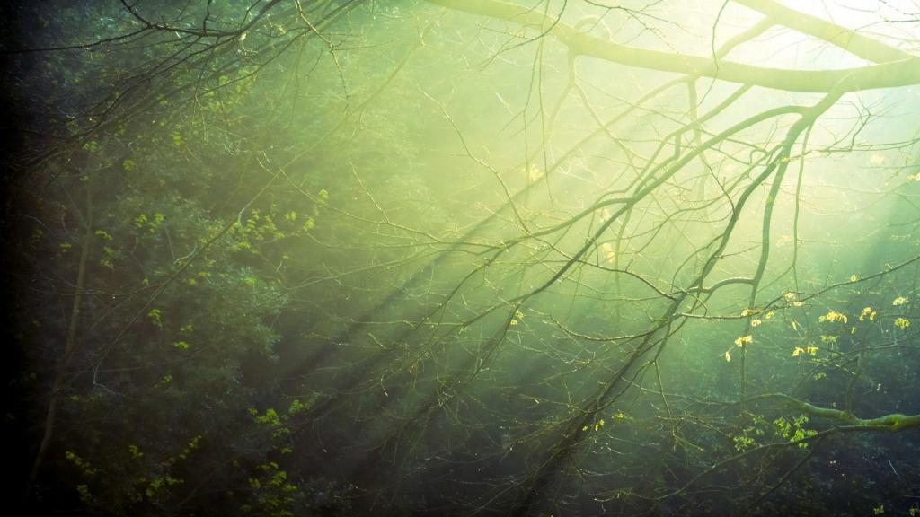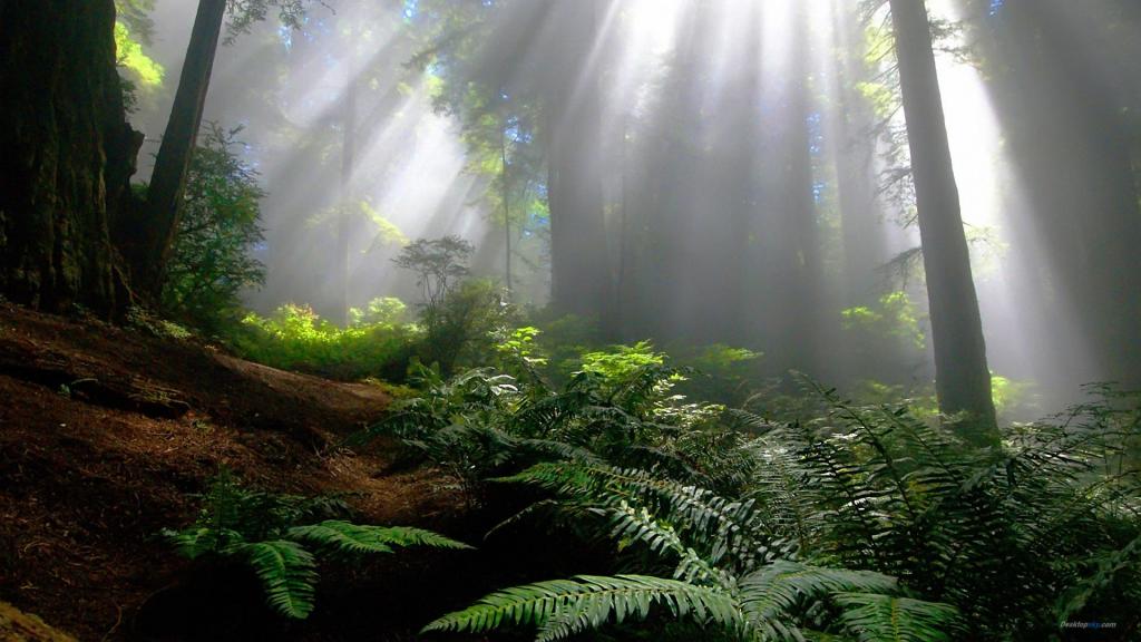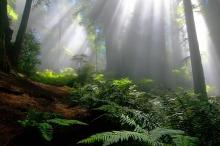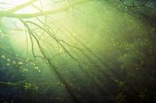 雨后温暖森林的阳光