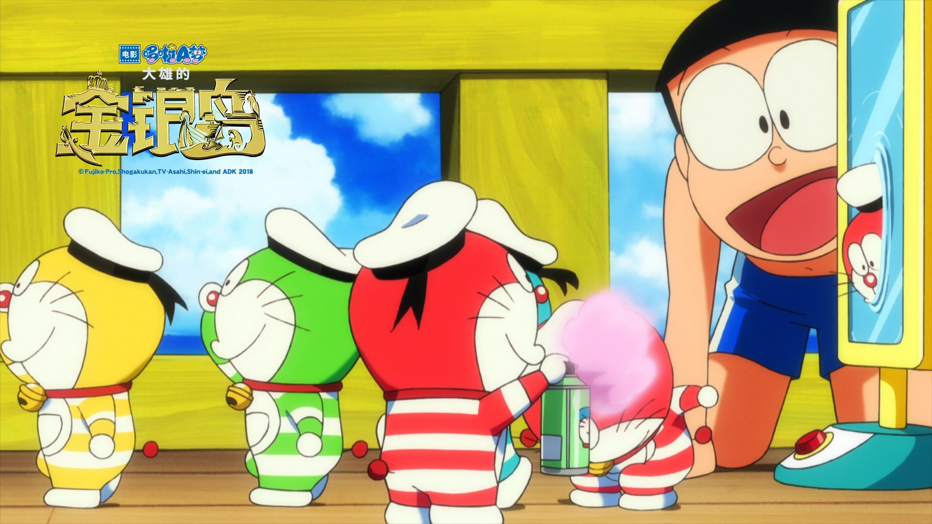 图集介绍:炎炎夏日,出木杉君向朋友们讲述了《金银岛》的故事。大雄(大原惠美 配音)兴致盎然,又在胖虎(木村昴 配音)、小夫(关智一 配音)以及静香(嘉数由美 配音)面前吹嘘要找到海盗的宝藏。当然,最终他还是要依赖忠实的好朋友哆啦A梦(水田山葵 配音)。哆啦A梦拿出了秘密道具“金银岛地图”,大雄则极其巧合地在太平洋中心找到了一座藏有金银财宝的新的岛屿。在此之后,好伙伴们扬帆远航,一路朝着太平洋中心前行。当最初的快乐刺激过后,一群神秘海盗将众人拦了下来。经过一番混战,静香还被对方当成另外一个女孩抢走。与此同时,大雄等人则救下了来自那座岛屿的男孩弗洛克(山下大辉 配音)。 展开