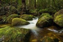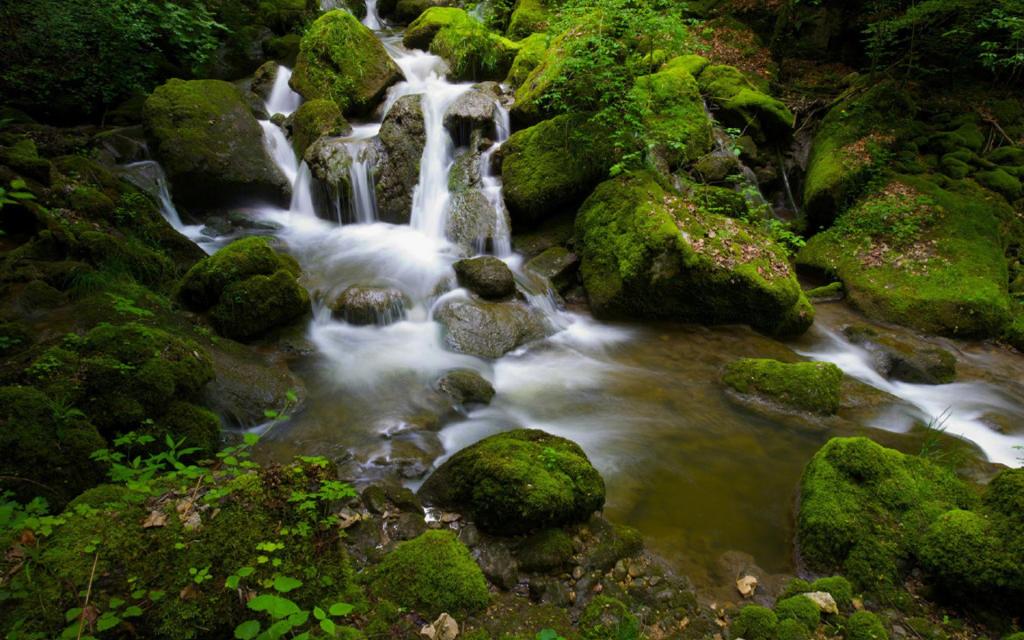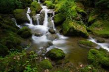 森林里的溪流瀑布自然风景