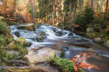 森林里的溪流瀑布自然风景
