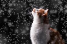 雪中行走的可爱猫咪