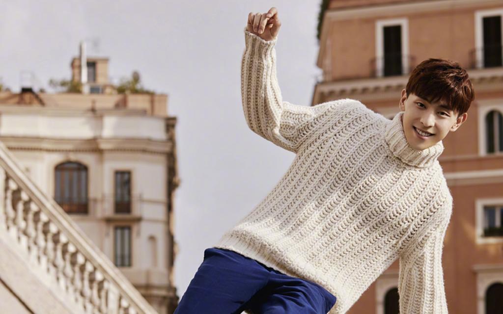 阳光大男孩邓伦休闲时尚白色毛衣写真