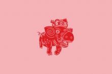 2019猪年喜庆红色背景插画