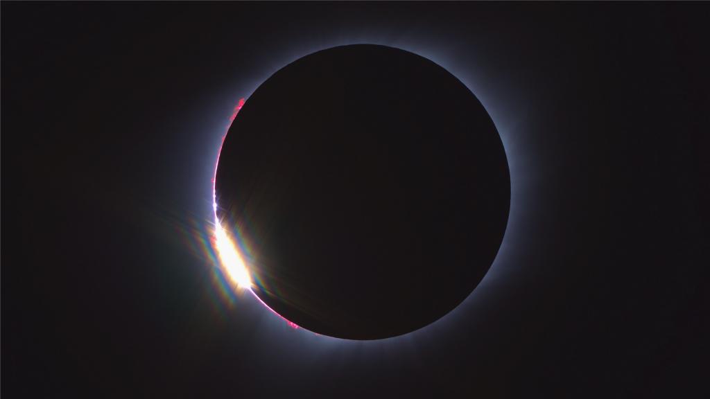 图集介绍:日食景观壁纸,又叫做日蚀,是月球运动到太阳和地球中间,如果三者正好处在一条直线时,月球就会挡住太阳射向地球的光,月球身后的黑影正好落到地球上,这时发生日食现象。