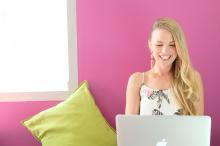 粉色吊带裙美女性感海边撩人写真