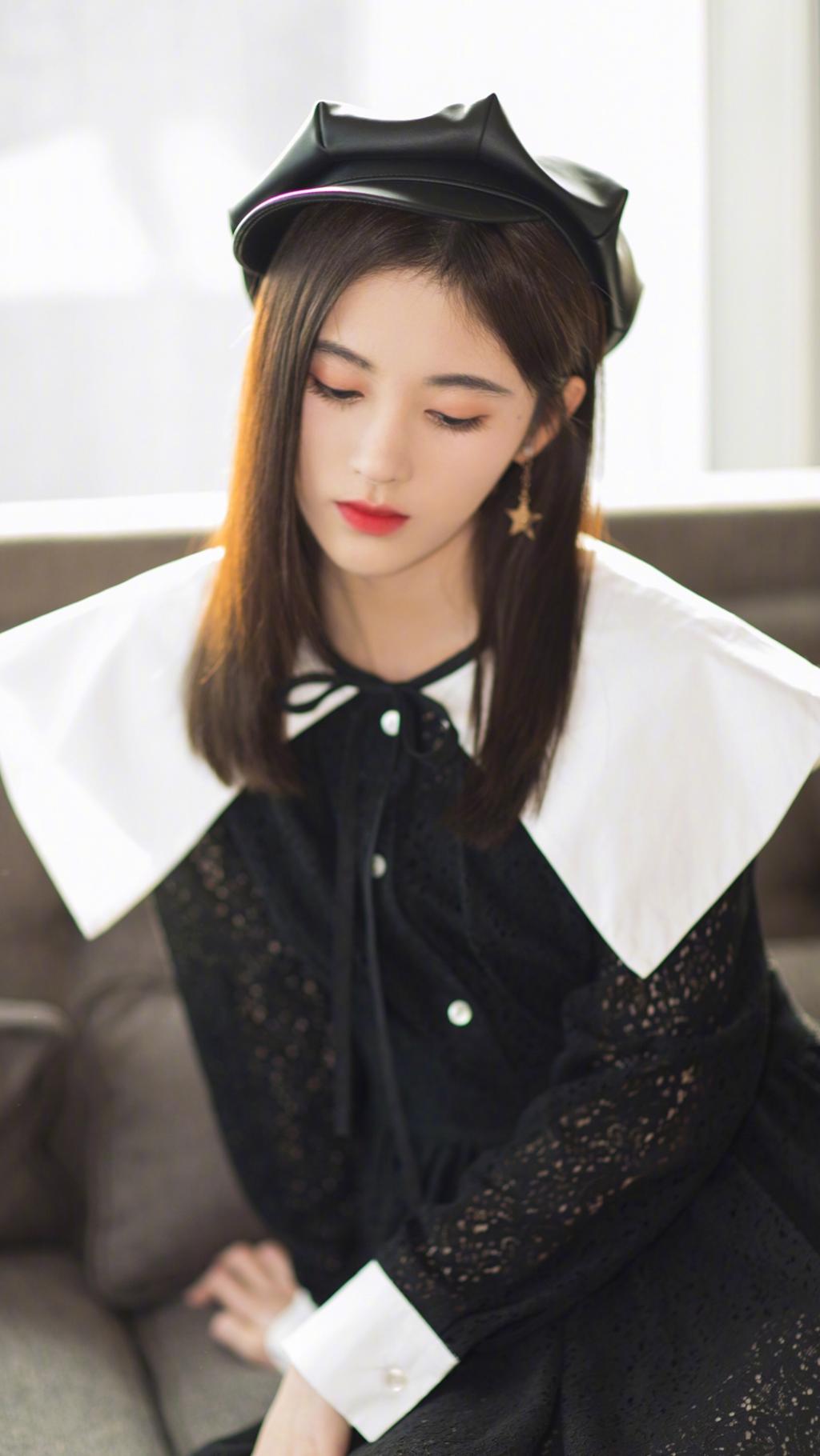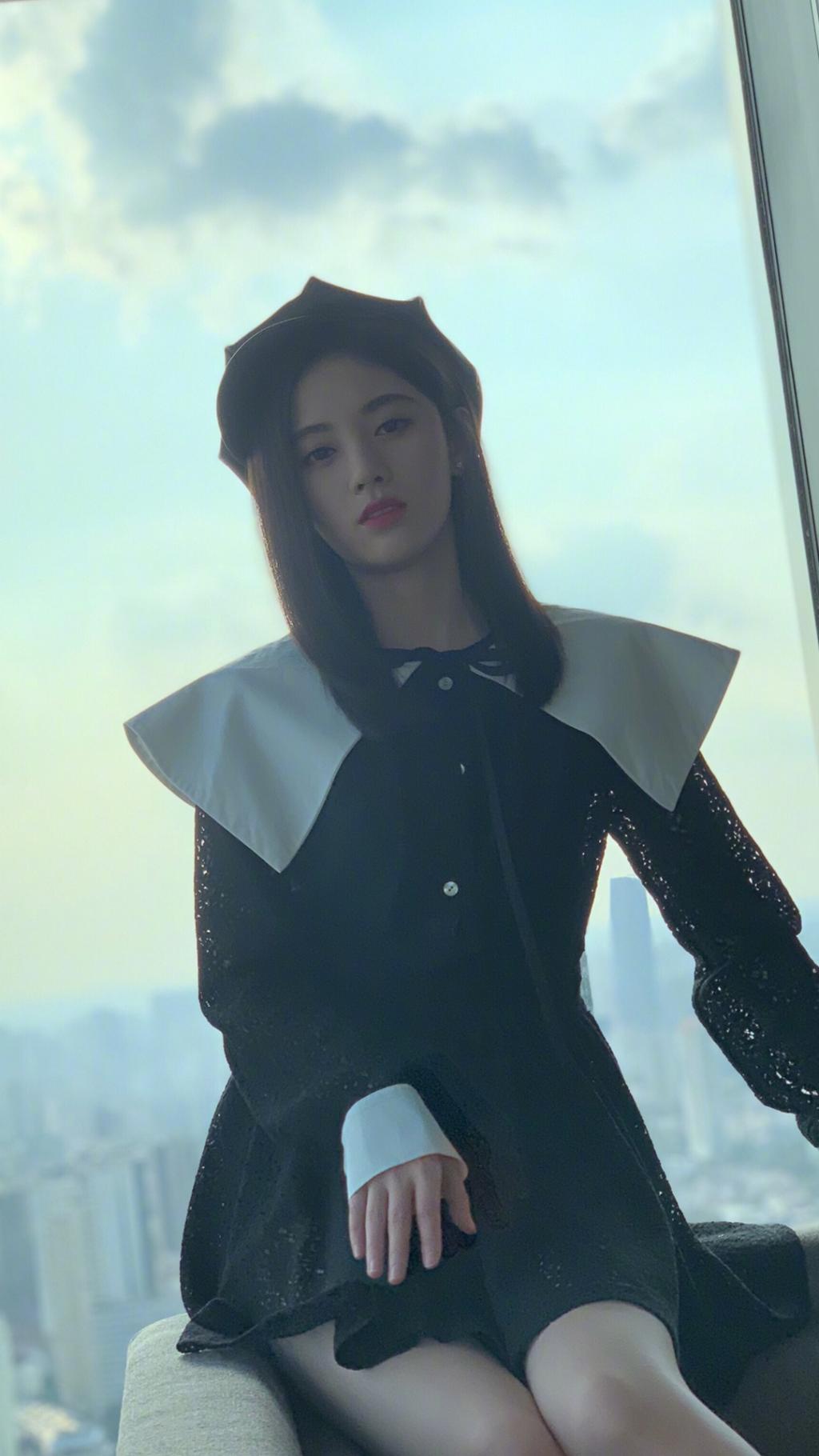 图集介绍:鞠婧祎晒写真照,黑色及膝裙,一身校园学生风让人眼前一亮。