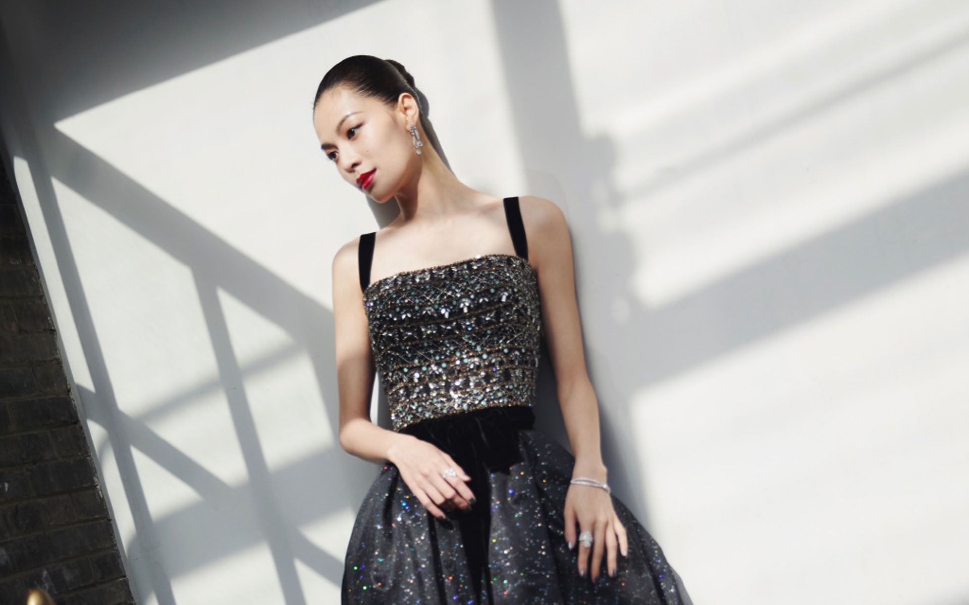 图集介绍:钟楚曦身着黑色钉珠长裙亮相红毯,天鹅颈加一字锁骨非常优雅,妩媚动人,古典美十足!