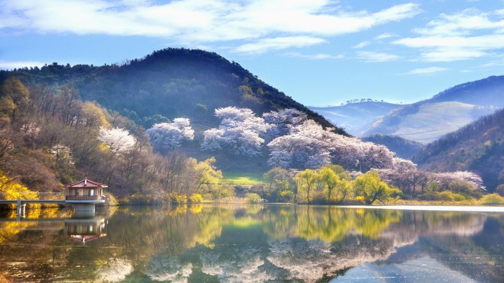 湖泊呈现的唯美倒影