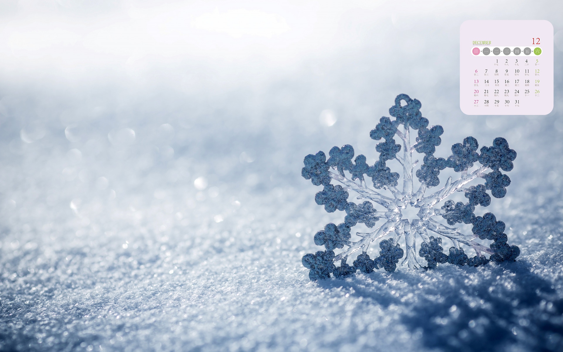 2020年12月那瑰丽的六角雪花日历
