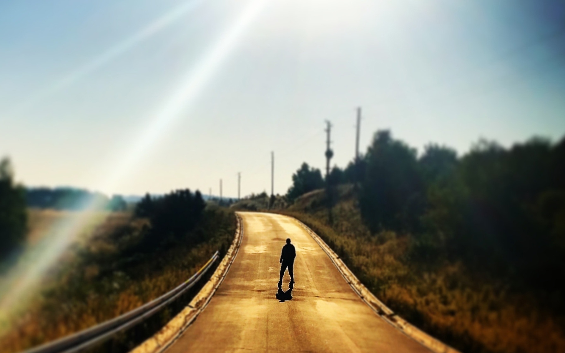 夕阳下孤独背影