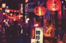 日本横滨中华城夜市街景