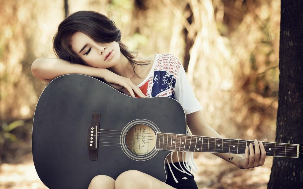 图集介绍:文艺女青年气质写真:女孩抱着吉他,看着这画面,突显出很有文艺气息的少女。