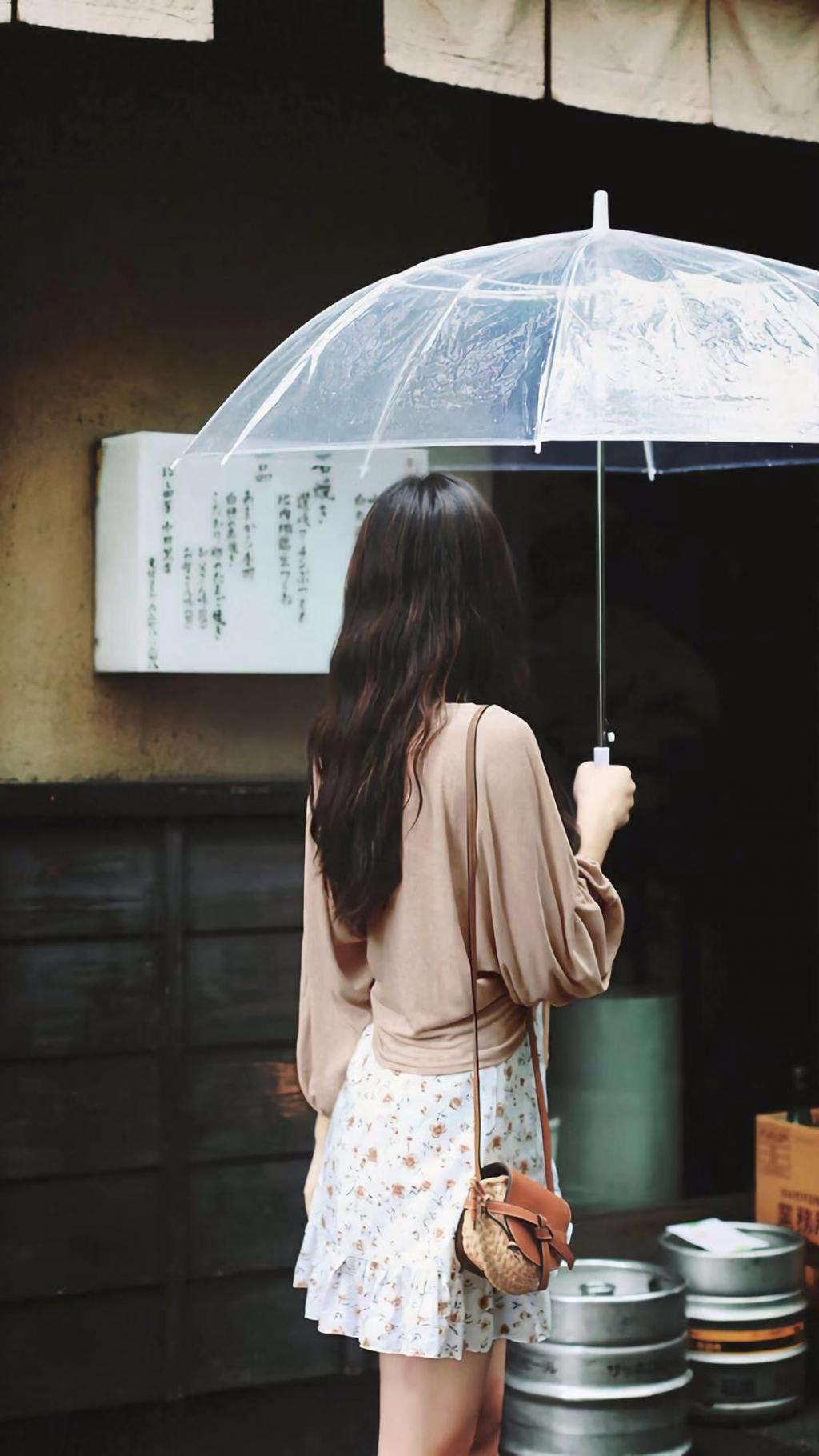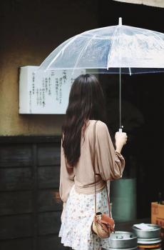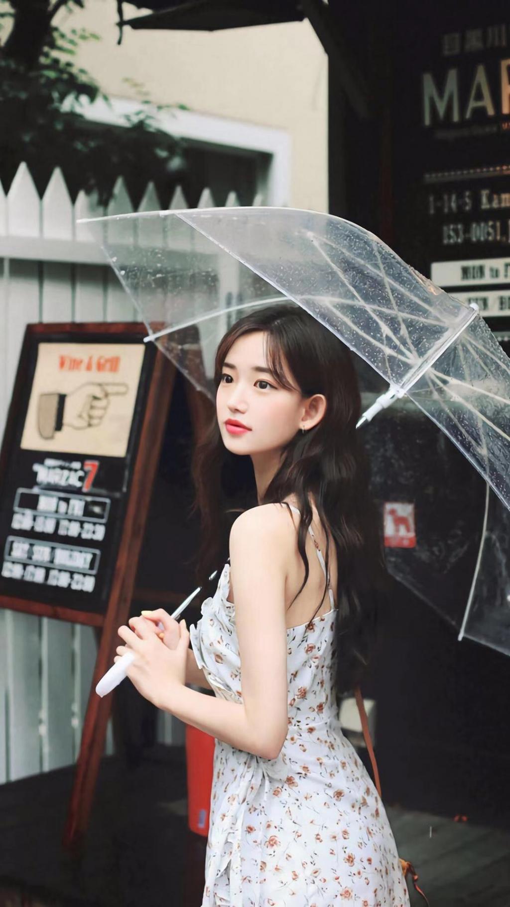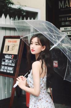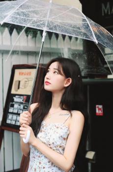 伞下的甜美女孩户外写真