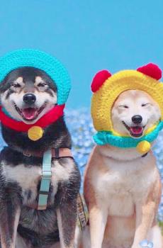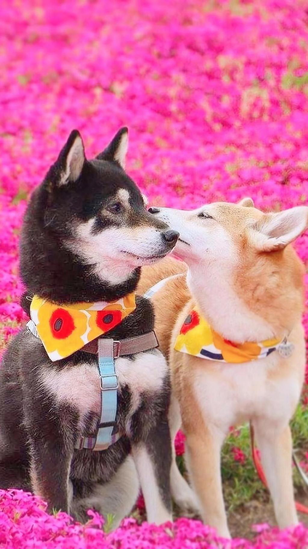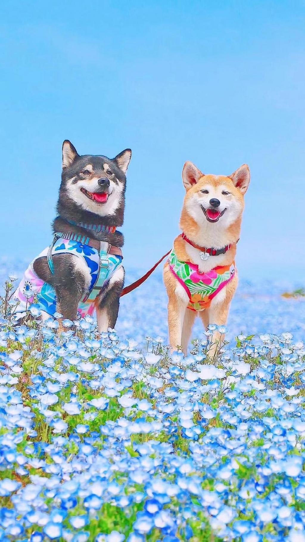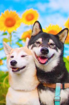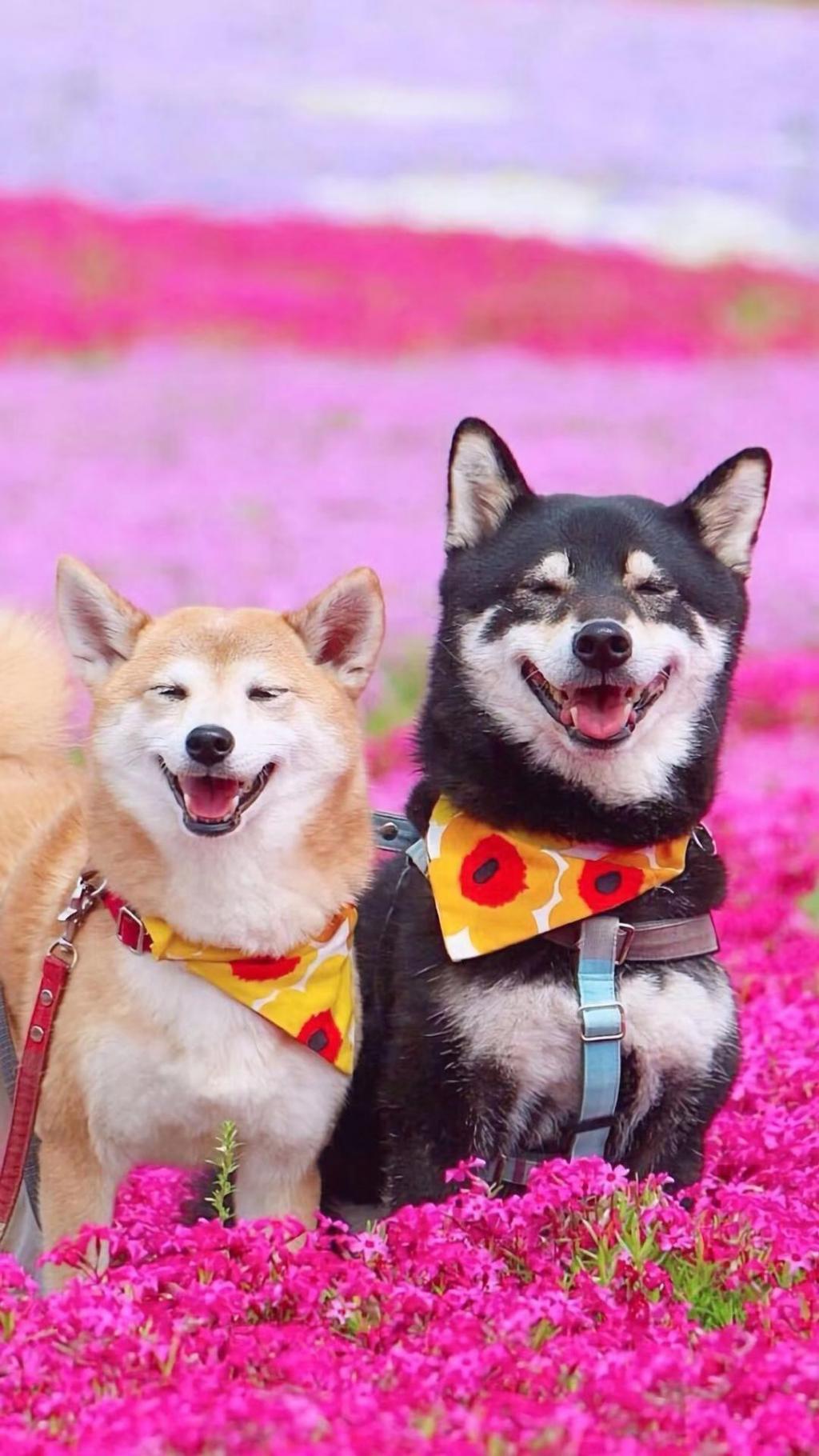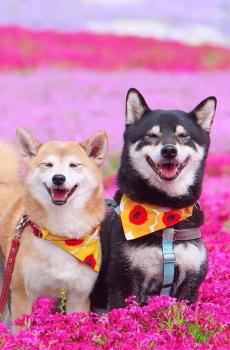 一对幸福的日本柴犬