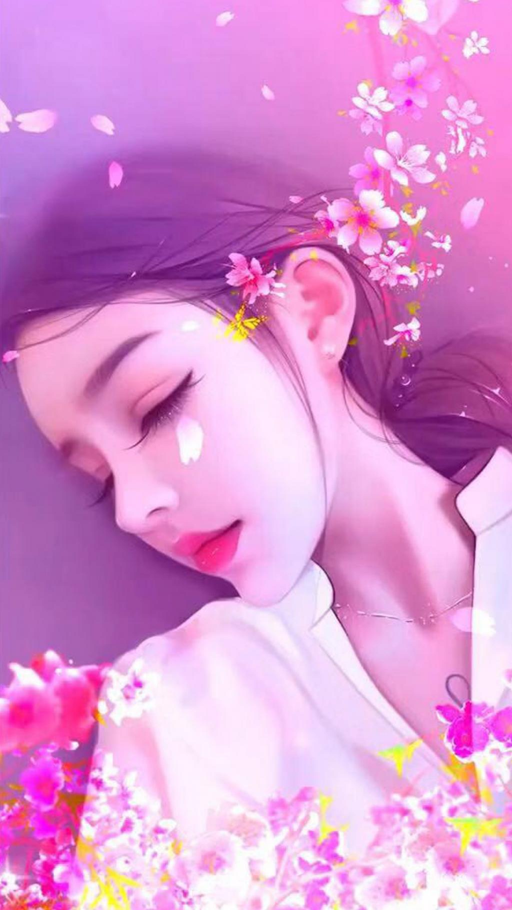 手绘甜美可爱动漫少女气质插画