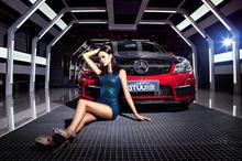 甜美车模奔驰C63桌面壁纸