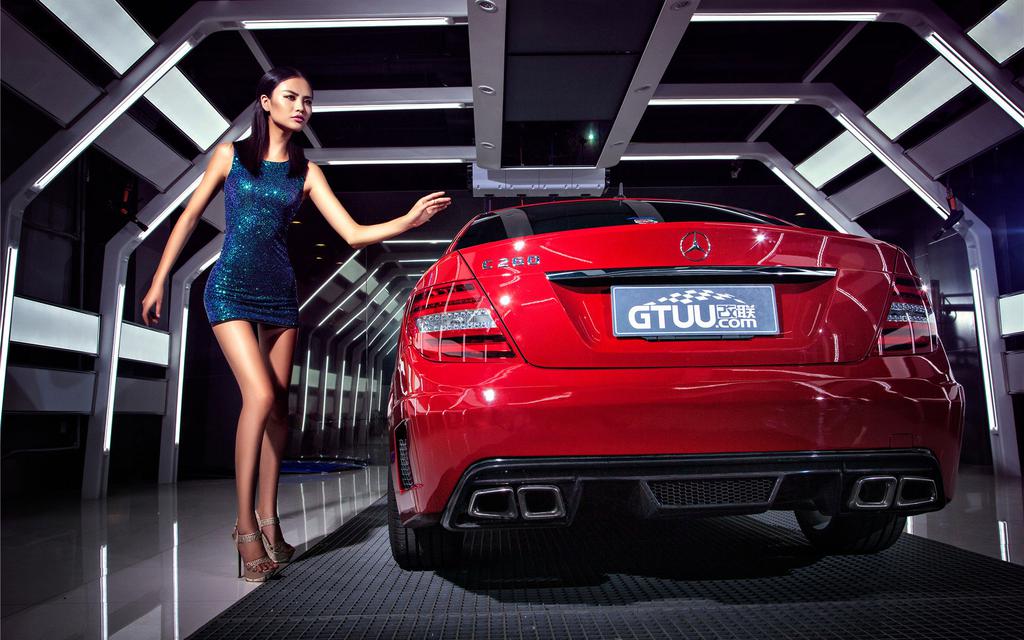 长腿车模奔驰C63 AMG BS壁纸