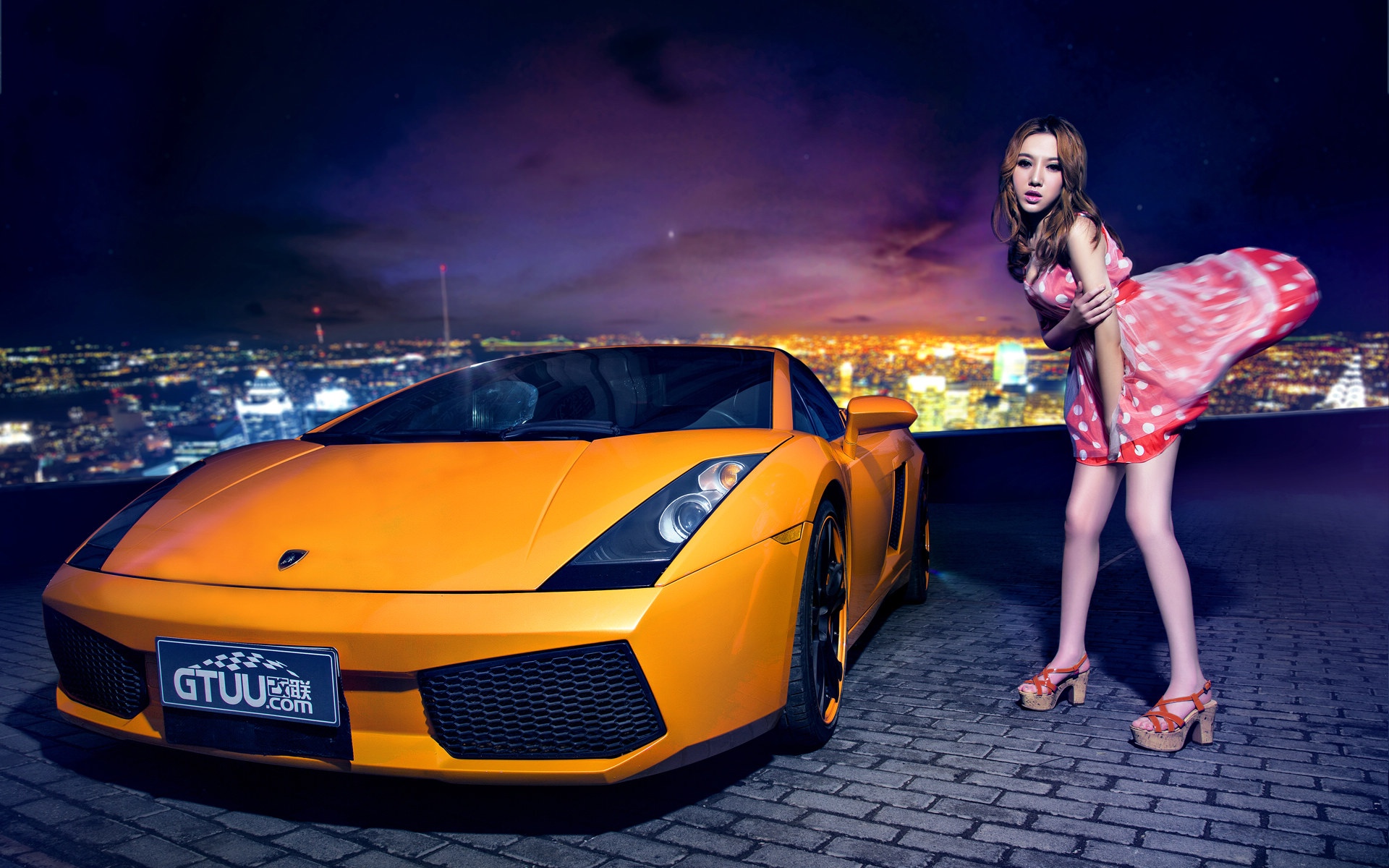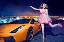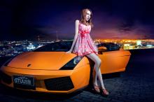 兰博基尼与红裙妖姬写真壁纸