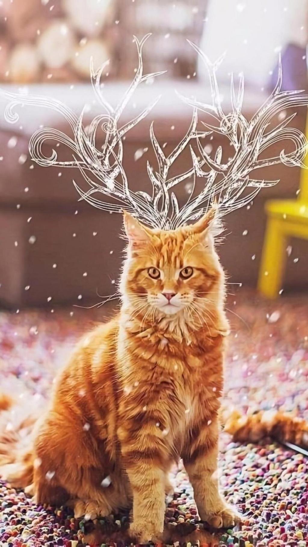 可爱圣诞白猫