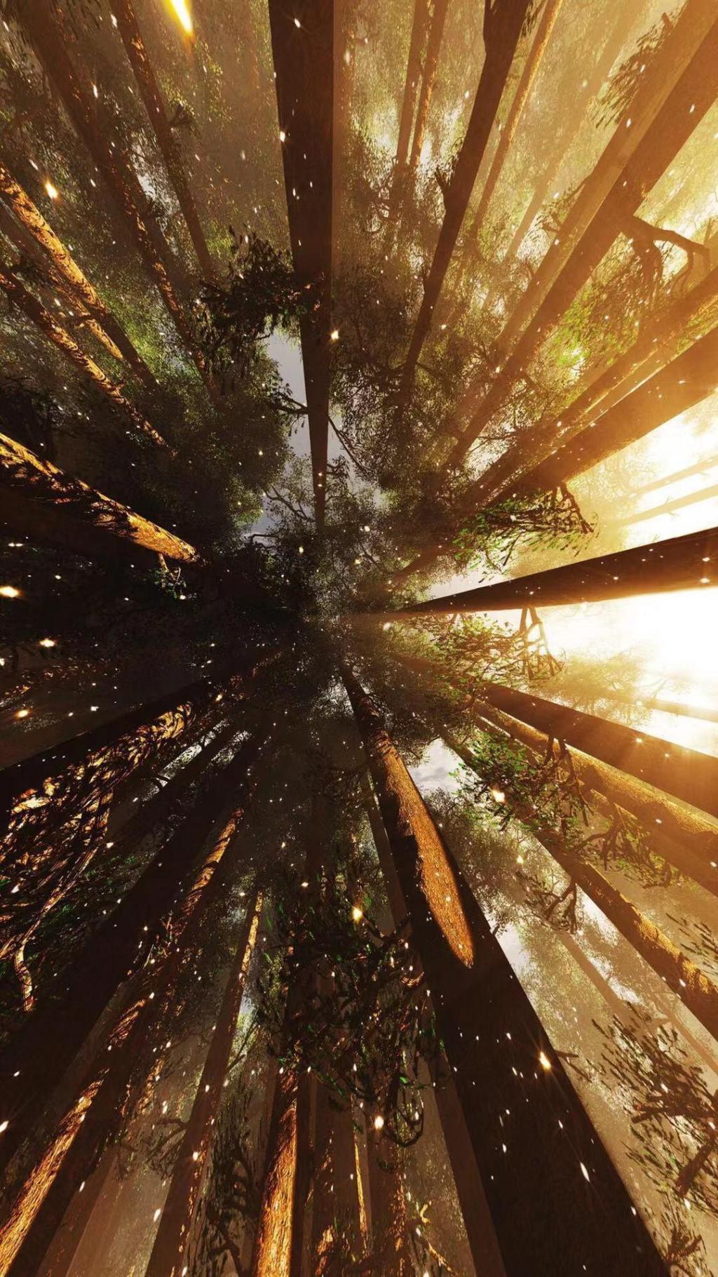 图集介绍:森林的美是看不完的,夕阳下森林中的树木让人美不胜收,偶尔仰望,又是另一道美景。