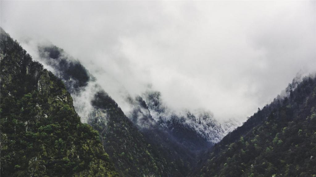 雾气朦胧,山峰高耸入云